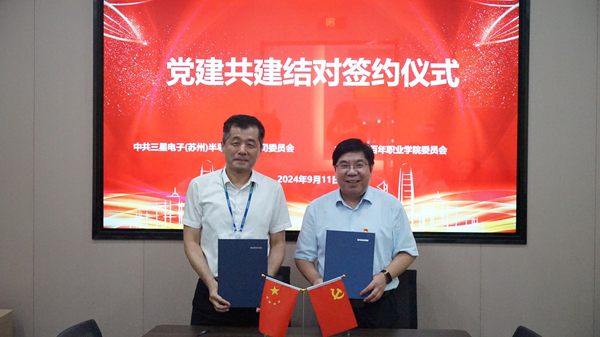 9月11日,我校党委与三星电子(苏州)半导体有限公司(以下简称“三星电子”)党委签订党建结对共建协议。我校党委书记孙红军与三星电子(苏州)半导体有限公司党委书记李成春共同签署了《结对共建协议书》。这份协议不仅承载着双方对深化校企党建合作、共同提升党建工作质量的共同愿景,更是对新时代背景下“互学互促、优势互补、资源共享、融合发展”理念的生动实践。