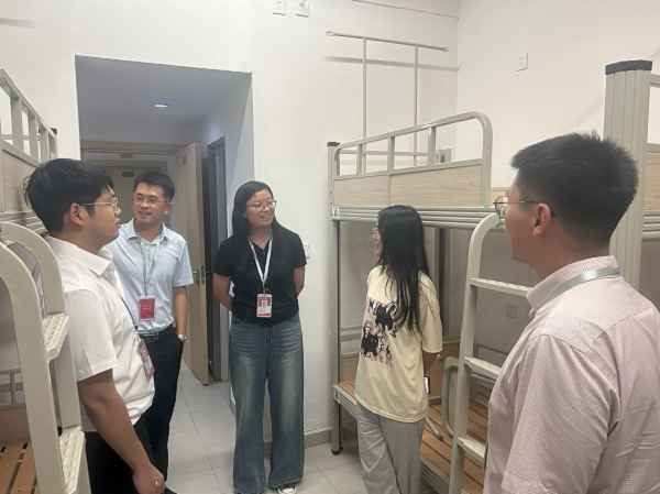 当晚报道完毕后,魏磊、李永泰携工学院全体新生辅导员一同前往宿舍走访,看望新生。他们亲切地与新生交流,询问学生的适应情况、生活需求,并鼓励他们积极进取,在苏百开启美好的大学生活。