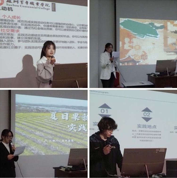 大会伊始,主持人首先介绍了本次答辩大会的会议流程以及评比规则。本次答辩评比标准包含实践展开过程、实践成果、ppt制作及答辩情况等三方面,以不同评分比重选拔优秀暑期社会实践报告。8名学生依次上台展示,从主题导向、实践成果、开展情况等方面进行论述。