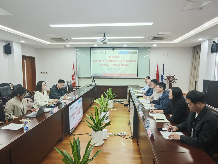 2024年10月31日,苏州经贸职业技术学院工业互联网学院考察团一行在党总支副书记庞馥珊、专职组织员朱庆生、团委书记董方慧等人的带领下,来到我校工学院进行考察访问。