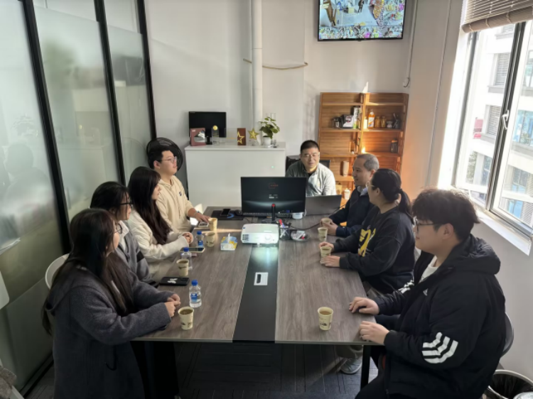 参访结束后,师生与企业负责人进行了深入的座谈交流。郭健和潘霓详细介绍了江苏省双创孵化项目的政策和支持措施,并表达了与两家企业合作的意向。未来,我校商学院学生团队将在双创项目的支持下,建立校园工作室,与企业合作优化线上运营和拓展海外市场。