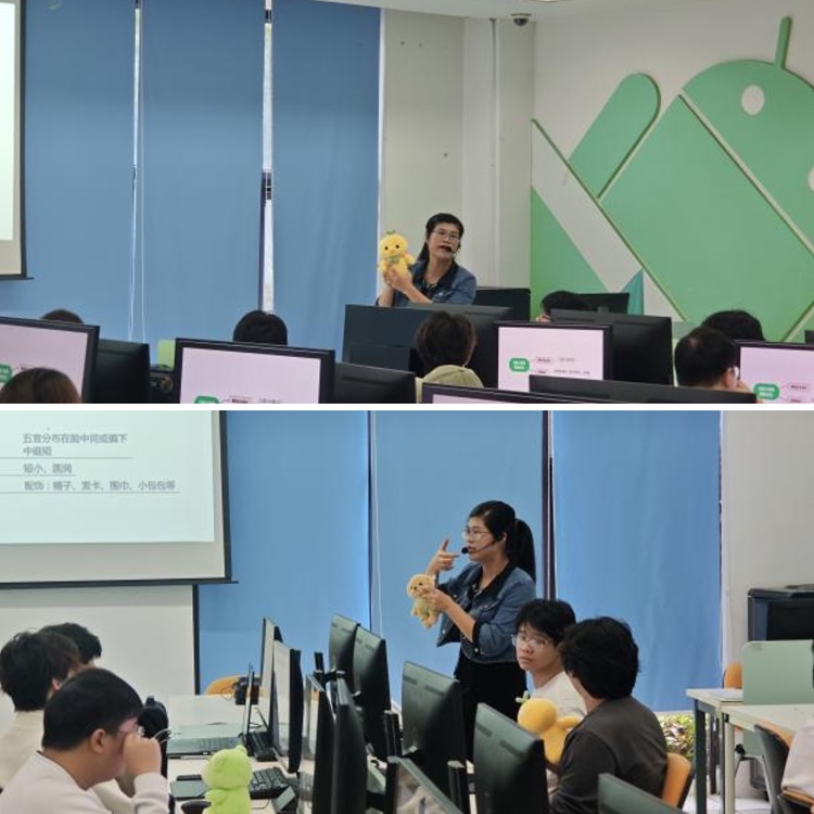 张萌老师的《设计基础》则以生活中的实例和优秀设计作品为切入点,通过点线面的讲解,引导学生理解设计的本质,课堂上师生互动频繁,氛围热烈。