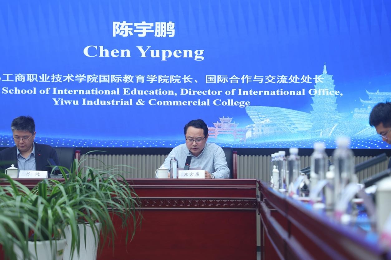 义乌工商职业技术学院国际教育学院院长、国际合作与交流处处长陈宇鹏作为新会员单位代表发言