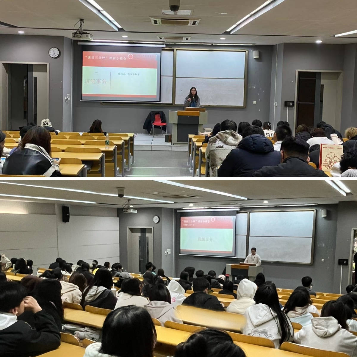 为深入贯彻落实习近平总书记关于“大思政课”的重要指示批示,坚持不懈用习近平新时代中国特色社会主义思想铸魂育人,紧紧围绕立德树人的根本任务,结合我校学生工作实际,商学院近期探索“课前三分钟”小班会新模式,达成良好实效。