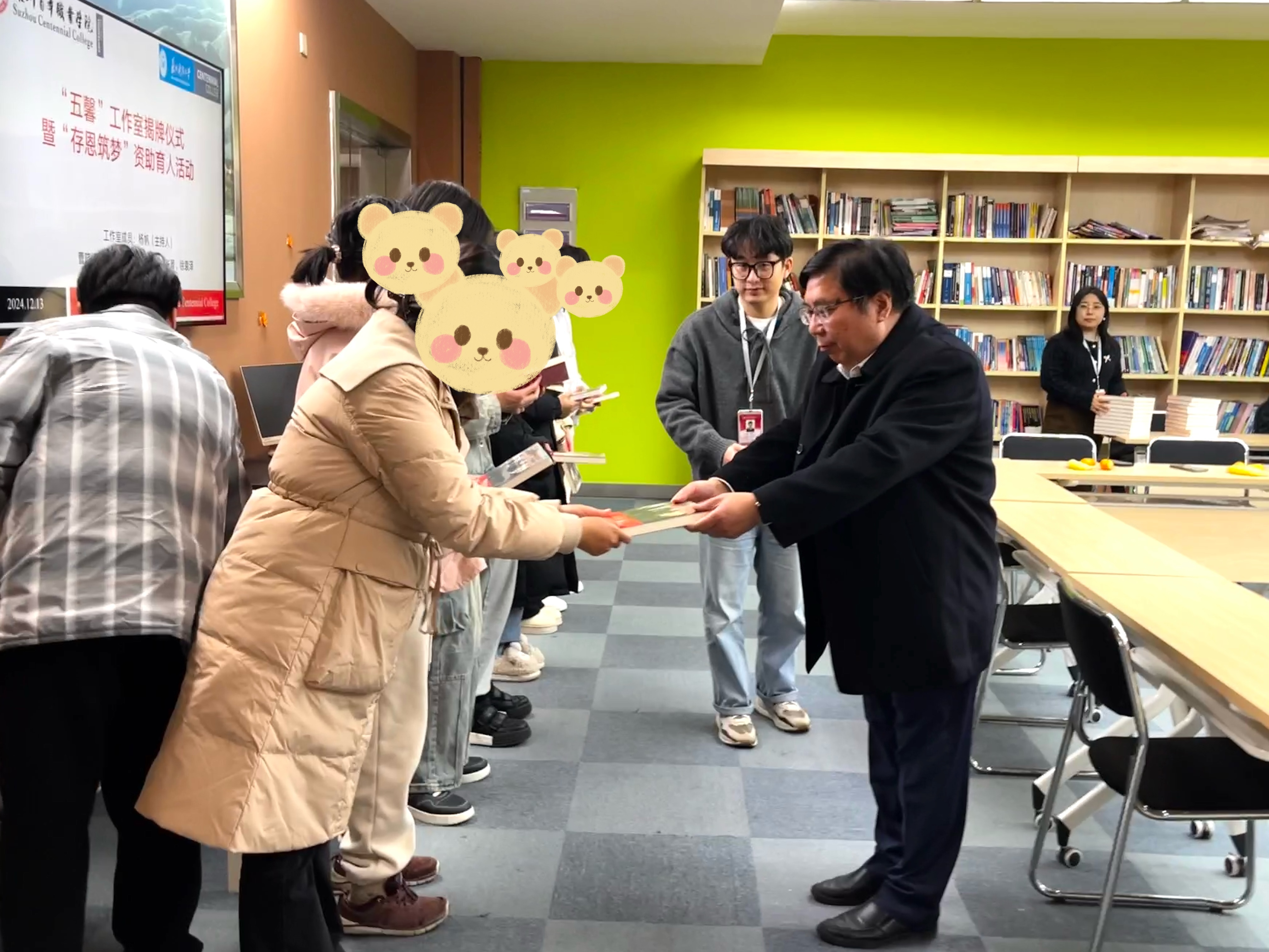 为进一步培养受资助学生的感恩意识和社会责任感,构建温暖和谐的校园环境,12月13日下午,未来工匠学院联合学工处学生资助中心开展了“五馨”工作室揭牌仪式暨存恩筑梦资助育人活动。校党委书记孙红军,学工处处长胡赛,学工处副处长、团委书记赵慧,“五馨”工作室全体成员及部分受资助学生代表共同参与了此次活动。未来工匠学院党总支书记曹晓娜主持仪式。
