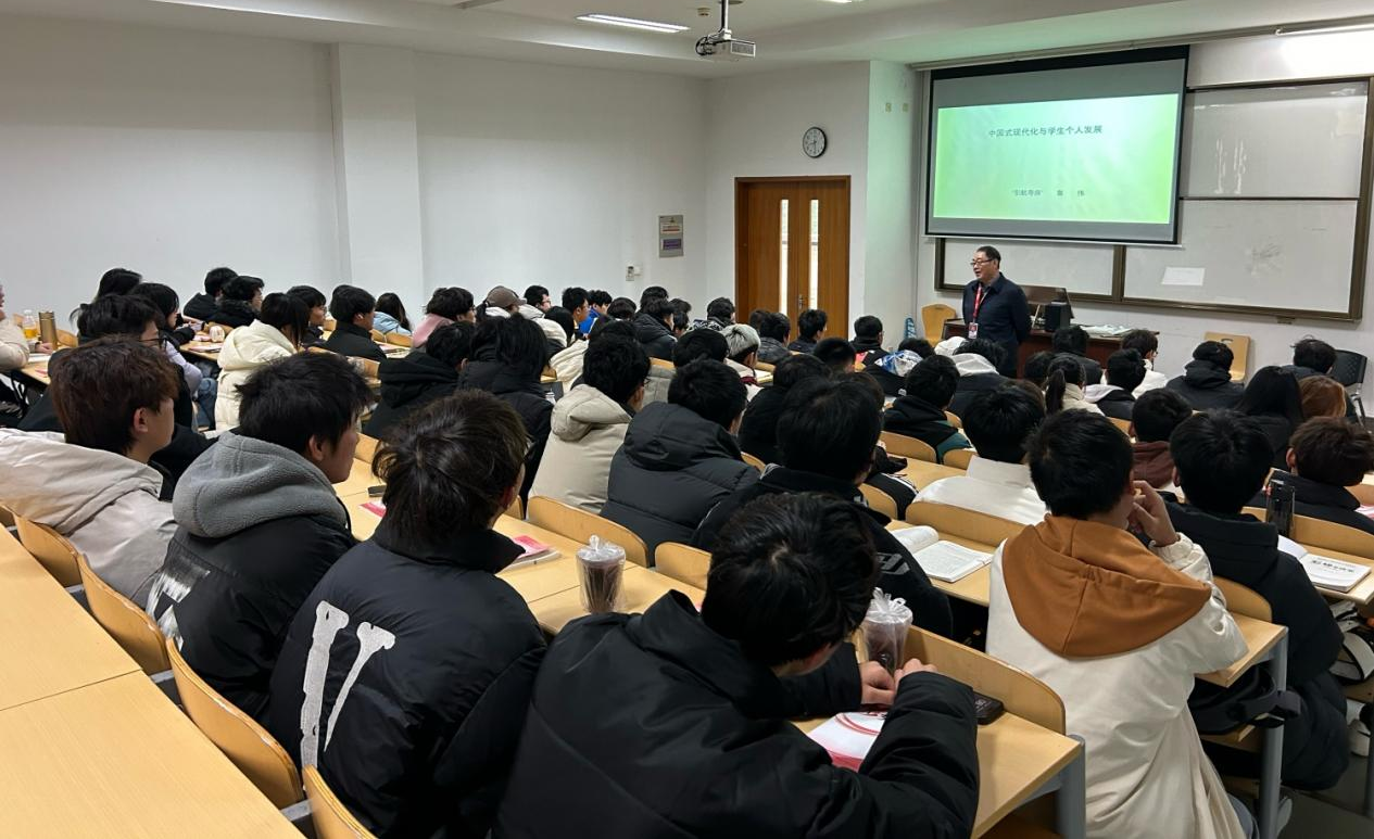 党委副书记、纪委书记鲁伟以“中国式现代化与学生个人发展”为主题首先为大一新生深入解读中国式现代化的内涵,并引导学生将个人发展与国家大局紧密结合,明确未来方向。其次他用“知己、知彼、目标、抉择、行动”十个关键词与同学们详细探讨了中国式现代化与学生个人发展的密切关系。最后以我校“442”发展目标为方向引领鼓励同学们要树立理想目标,并将个人理想融入国家发展大局,用实际行动践行新时代青年的责任与担当,才能更好地实现自我价值,成就一番事业。