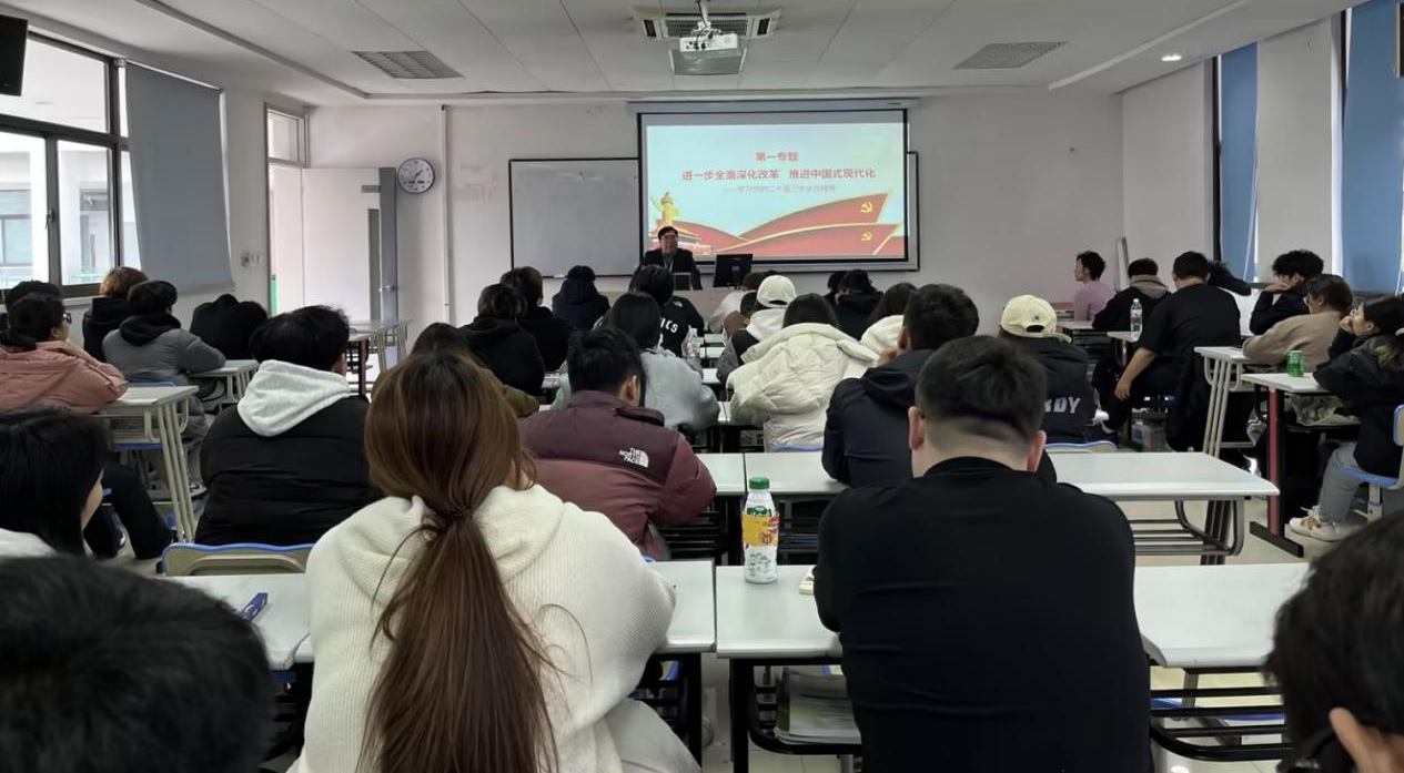 校党委书记孙红军以“进一步全面深化改革推进中国式现代化”为主题,围绕党的二十届三中全会的主题和新时代全面深化改革所取得的重大成就、中国式现代化的重大意义和总体要求、党中央对于进一步全面深化改革做出的系统部署、推进中国式现代化的领导水平等内容进行了详细的讲解。着力引导学生进一步明晰全面深化改革、推进中国式现代化的重要性和必要性,了解党中央为此所作的部署安排,结合自身所学专业,对我国经济发展总体态势有更进一步的理解,对自身职业规划有更明晰的方向,树立学生“四个自信”,增强民族自豪感和社会责任感,引导学生把个人理想融入时代主题、汇入复兴伟业,勇做担当民族复兴大任的时代新人。