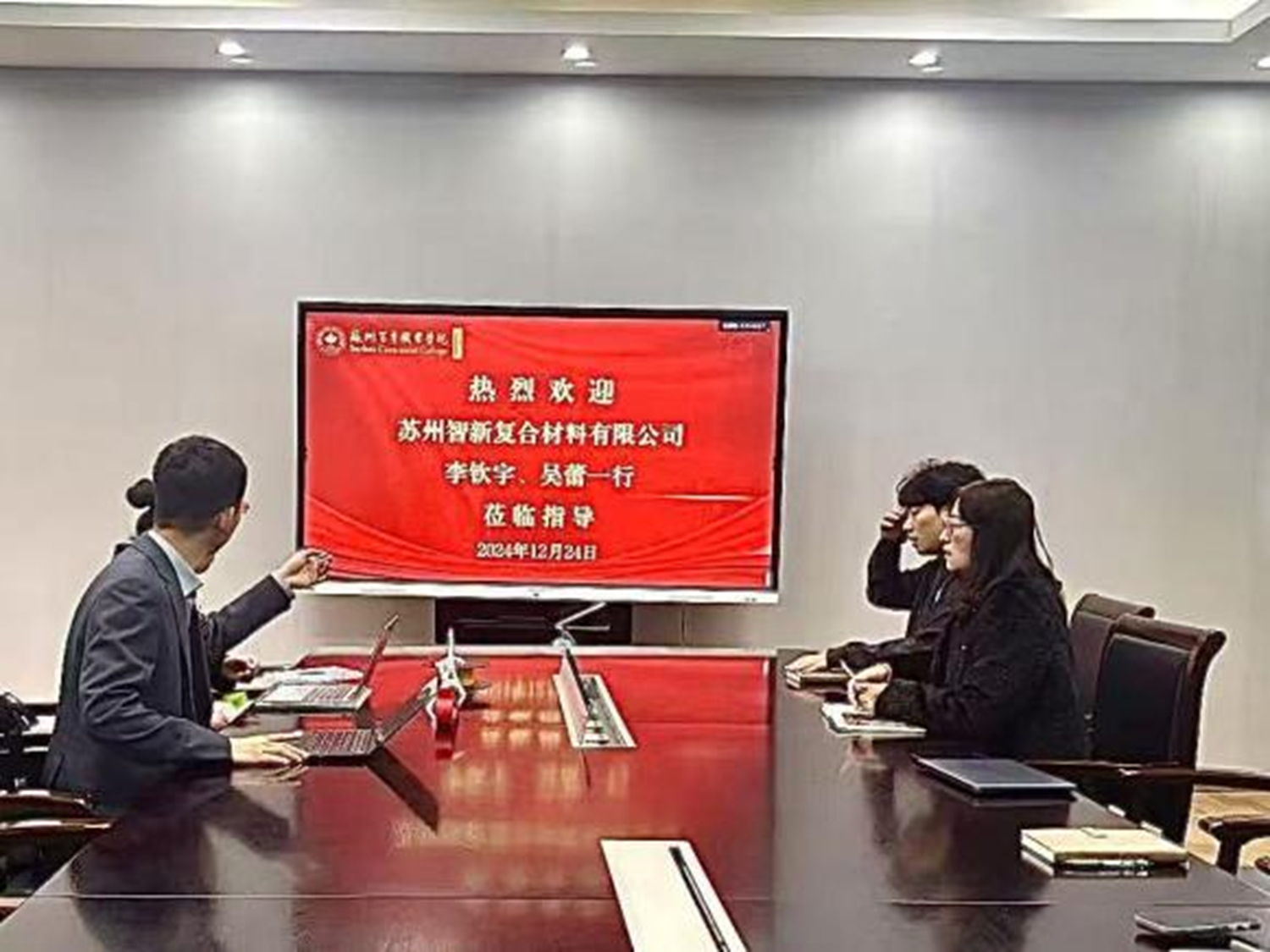 2024年12月25日,我校艺术设计学院与苏州智新复合材料有限公司围绕产教融合与交叉型人才培养开展专业研讨会议,双方将共同探索艺术设计与新材料领域的深度融合,旨在培养具有创新能力和实践技能的设计人才。