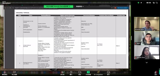 2025年1月16日上午9点,kaiyun开云官方商学院成功举办了一场聚焦于 International Business 专业的培训活动。此次培训特邀加拿大百年理工(CC)商学院副院长 Amanda Stone 女士,与kaiyun开云官方商学院的新任CC教师齐聚一堂,共同围绕课程大纲、教学管理及过程展开深入讲解与热烈讨论。