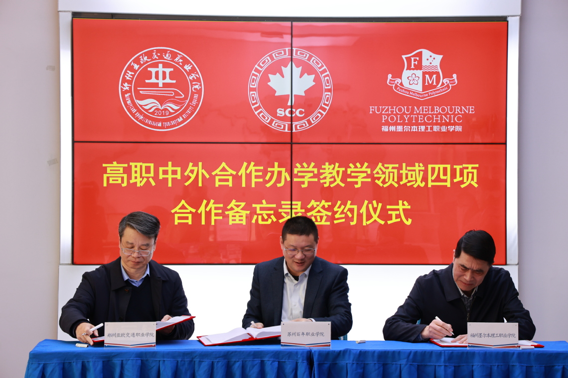 会议最后,三校现场签署《高职中外合作办学领域七项合作备忘录》,作为纲领性合作框架,该备忘录涵盖教材建设、课程建设、师资建设等七大战略模块,并采用轮值制确保合作持续高效推进。