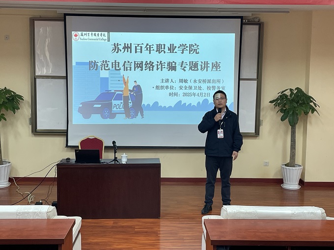为进一步增强我校师生的防诈骗意识,切实提高识别和防范电信网络诈骗的能力,我校于4月2日特邀永安桥派出所驻我校民警周敏为广大师生开展了一场防范电信网络诈骗的专题讲座,全校各部门教师代表、学生工作处和安全保卫处全体人员、所有辅导员老师及各班学生代表共170余人参加了讲座。