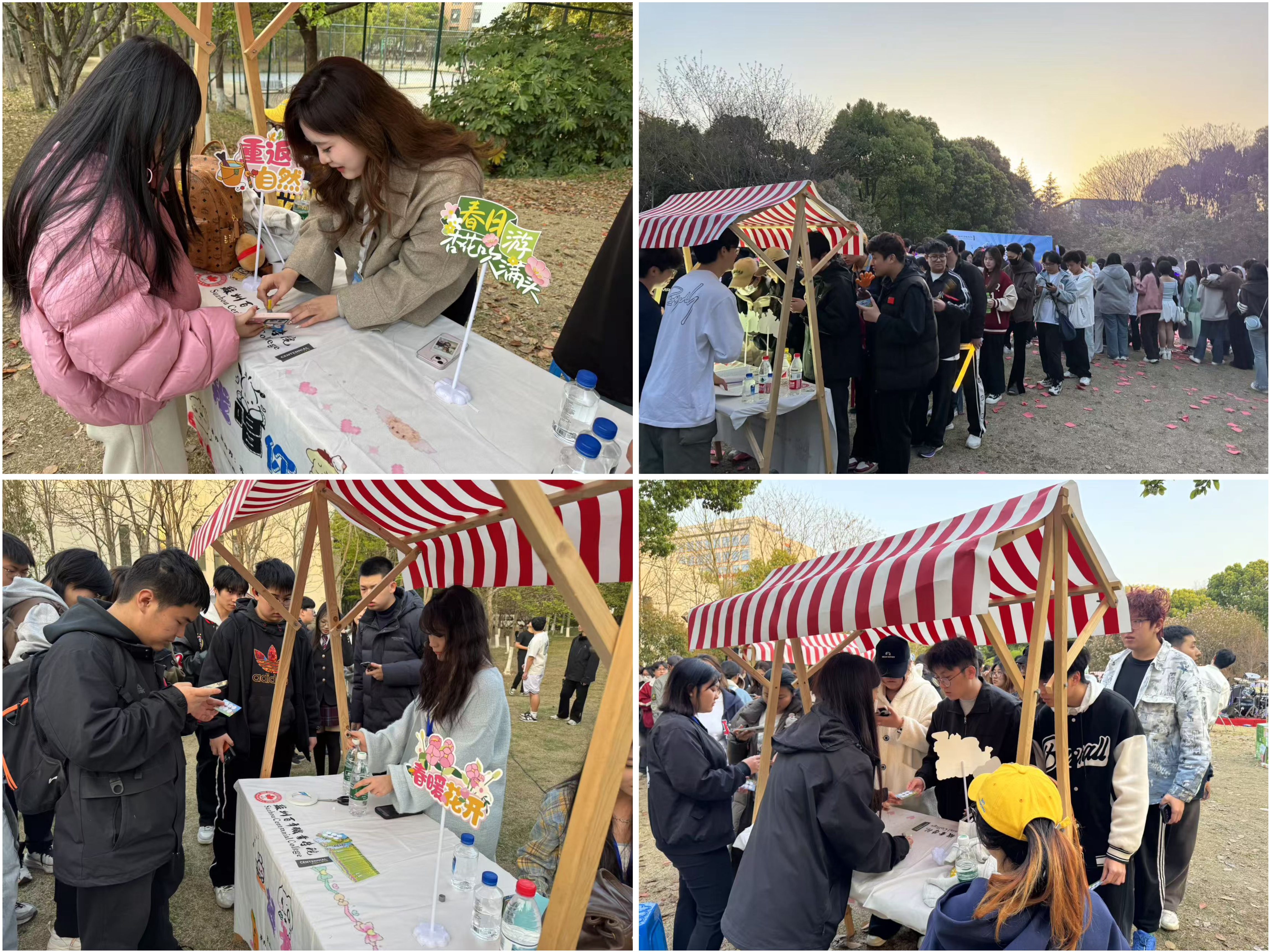 除了音乐演出,本次音乐节还特别设计了“市集互动”环节,现场布置的6个市集摊位各具特色,设计了一系列富有创意和挑战性的互动游戏,吸引众多学生的积极参与。通过每个摊位的趣味互动打卡,进一步增强了音乐节的整体氛围和学生的参与感。