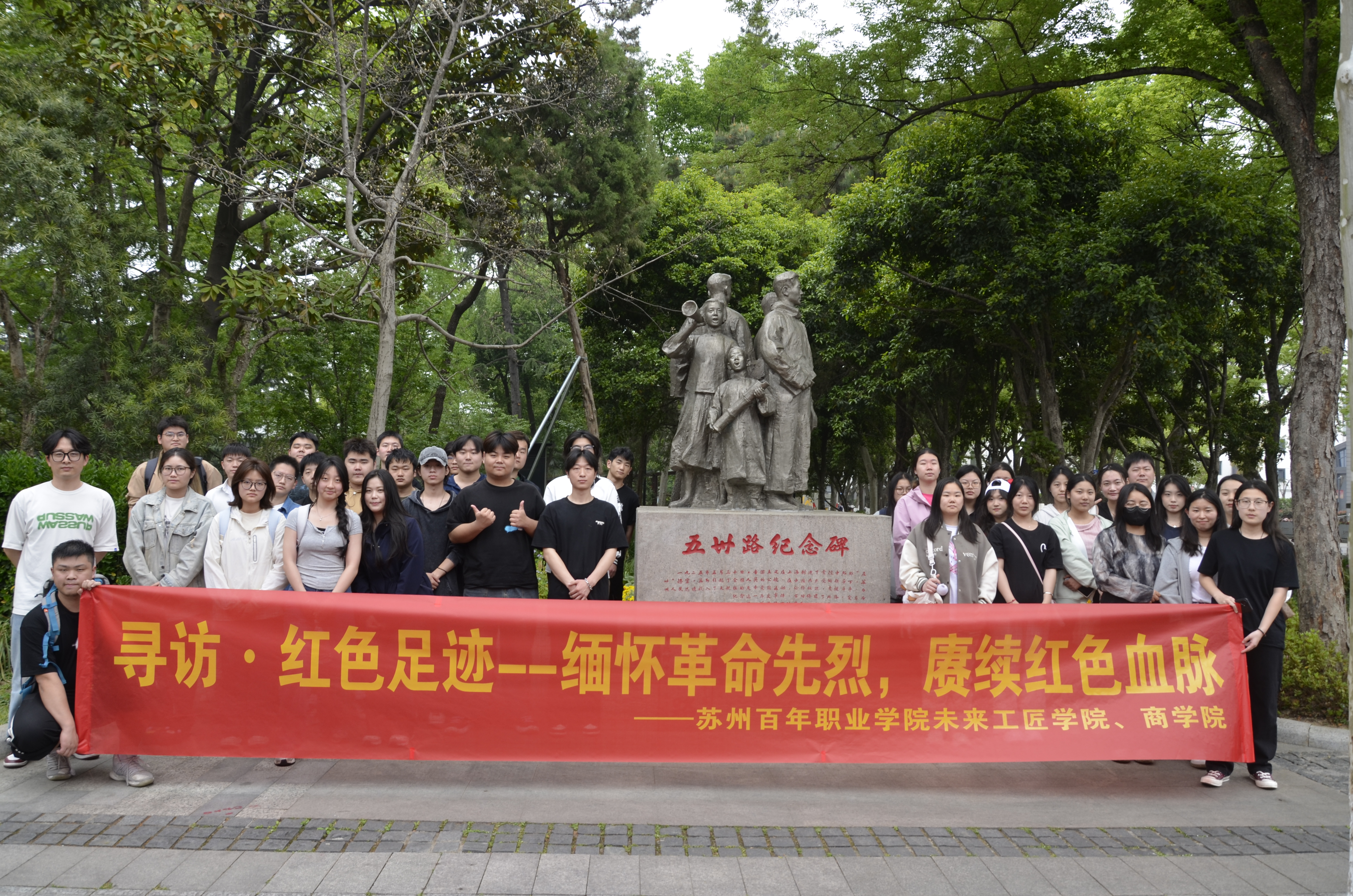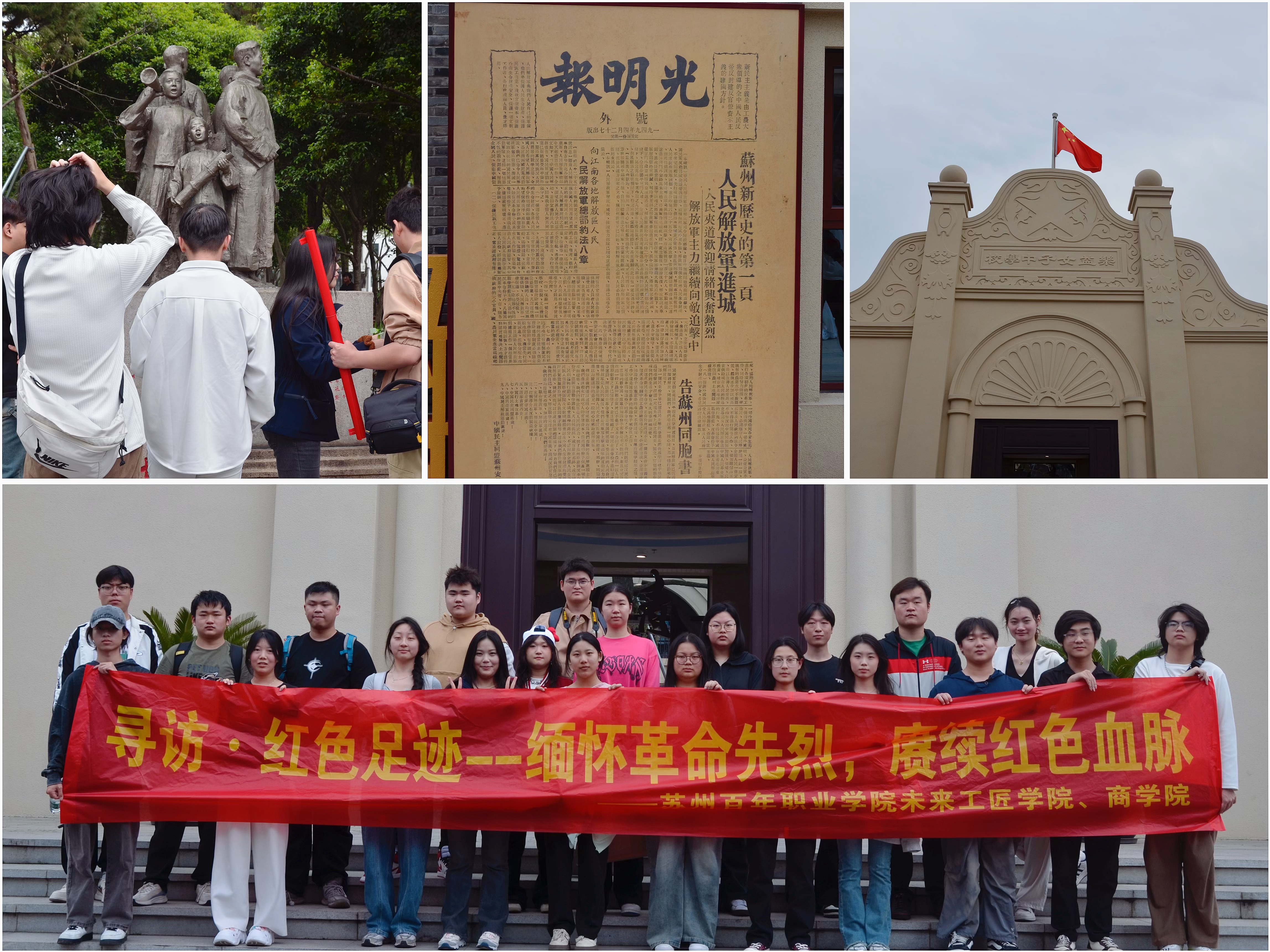 活动当日,师生代表们满怀热忱奔赴红色之旅,他们在五卅路纪念碑缅怀先烈,于章太炎故居领略文化先驱风采,在中共苏州独立支部旧址回溯建党初期热血奋斗,走进肯达美术馆感受艺术与革命的交融。师生们透过沿途珍贵文物、历史照片及详实文字资料,沉浸式体悟先辈伟大精神。