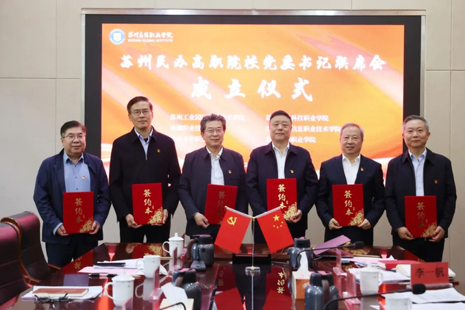 最后,六所民办高职院校的党委书记共同签署了合作协议。这一签约仪式标志着苏州民办高职院校在党建工作领域开启了新的征程。未来,各校将依托党委书记联席会这一平台,在党建资源共享、党建活动共办、党建经验互鉴等方面开展全方位合作,推动党建工作与教育教学、人才培养、社会服务等工作深度融合,以高质量党建引领学校高质量发展。