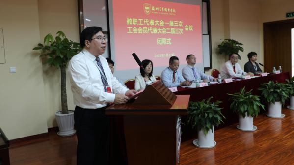 在闭幕式上,校党委书记孙红军发表了热情洋溢的讲话。他指出,代表们本着对学校事业发展高度负责的态度,认真履行职责,积极建言献策,提出了许多富有建设性的意见和建议,体现出各位代表对学校的深厚情感和期盼学校更好发展的美好愿望,充分反映了广大代表参政议政的意识进一步加强,能力水平进一步提升,干事创业的精气神空前高涨,有利于全校上下进一步统一思想,形成共识,并对学校当前和今后一个时期的工作产生重要的积极影响。他还就贯彻落实好本次会议精神,进一步做好教代会和工会工作,推动学校事业高质量发展提出了发挥教职工智慧、弘扬主人翁精神,构建学校发展共同体,凝心聚力谋发展;以实干担当为基石,聚焦重点任务,在高质量发展中取得新突破,彰显新作为;以政治建设为统领,全面加强党的建设,以高质量党建引领学校事业高质量、跨越式发展等三点要求,希望全体教职工在中外合作办学高职院校创新版建设中步履铿锵、勇毅前行,书写学校高质量、跨越式发展辉煌新篇章!