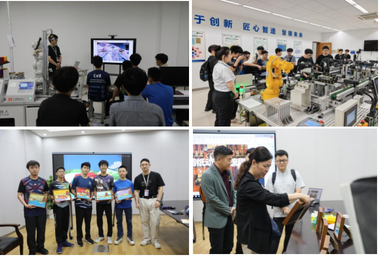 研学团师生深度体验了两场特色鲜明的实践教学课堂。在工业互联网实训基地,师生们亲自动手操作工业机器人示教器,通过编程指令完成物料搬运全流程,零距离感受了智能制造技术的魅力;以“非遗剪纸+数字动画”创新工坊为载体,来宾体验苏州剪纸技艺后,现场创作剪纸作品并用手机拍摄定格动画,亲身感受非遗文化在现代科技赋能下的创新活力。