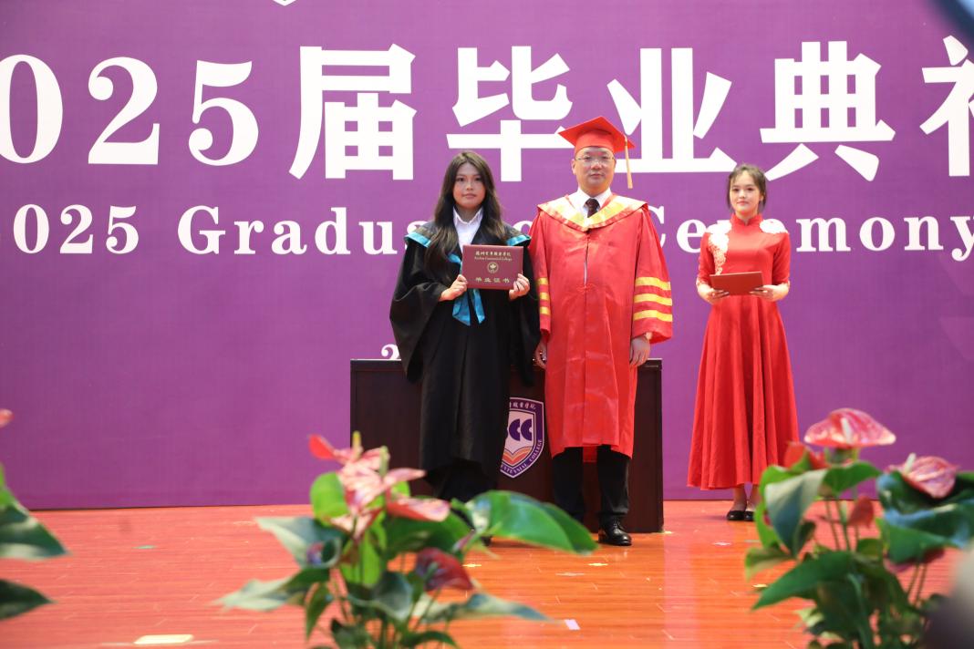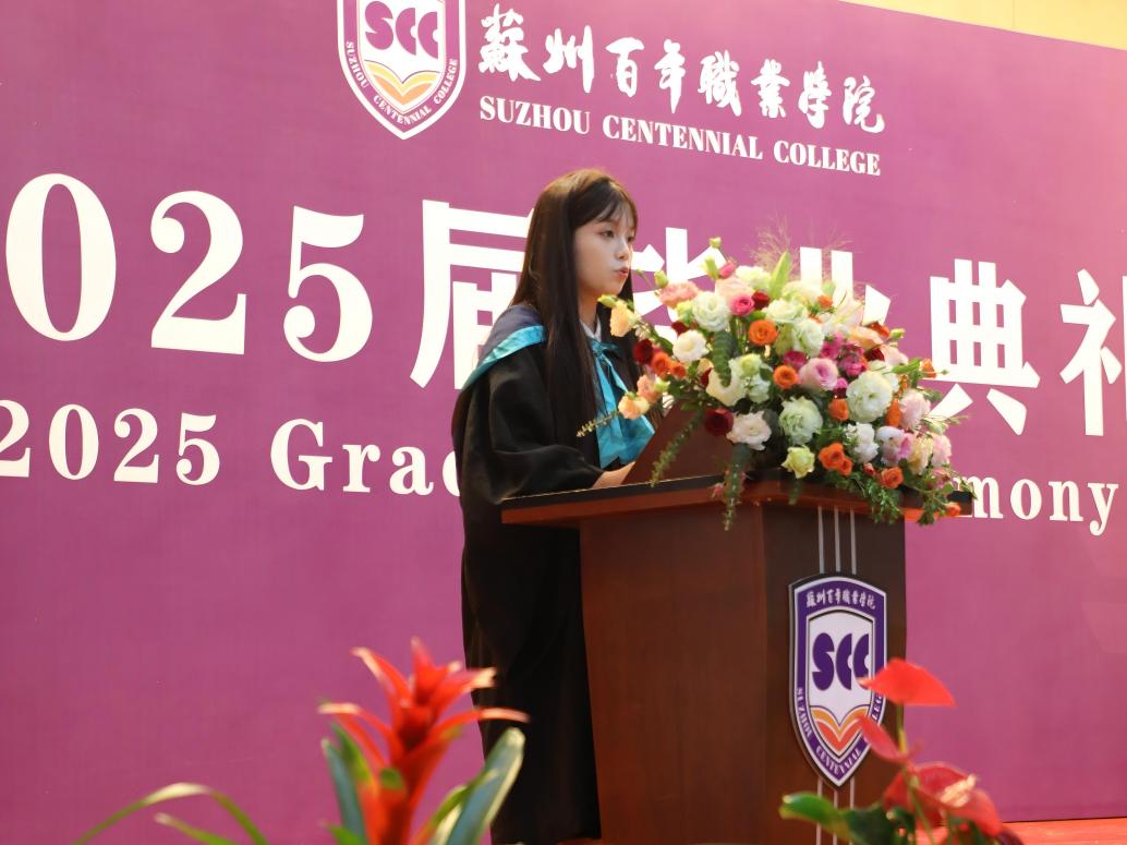 优秀毕业生代表刘高玉彤则回顾了在学校鲜明办学特色引领下,自己从青涩学子成长为自信青年的历程。她立志要将个人理想深深融入到国家富强、民族复兴和人类进步的壮阔征程中去,用实际行动践行“请党放心,强国有我”的青春誓言。