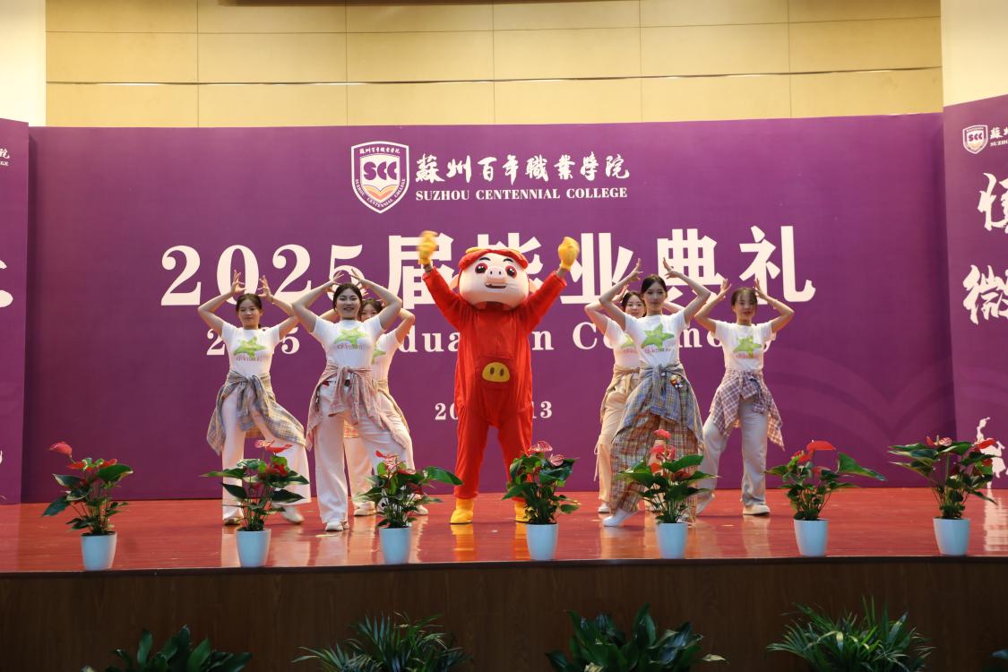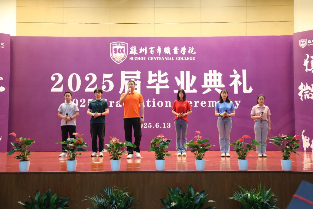 最后,典礼在祝愿广大毕业生能不断突破自我、勇往直前的歌舞串烧《青春不散场》高亢旋律中,圆满落下帷幕。