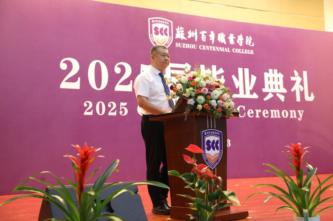 典礼上,校长李世明发表题为《以匠心铸魂,赴时代新程》的重要讲话,深情回顾了1203名毕业生三年来的成长历程,特别点赞了在升学就业、技能竞赛、志愿服务等方面表现突出的优秀学子,并勉励广大毕业生牢记“至诚求索,慎微笃行”校训,将母校当作永远的“精神原乡”,锚定AI时代的“不可替代性”,牢牢掌握“终身学习、极致精神、变革意识”金钥匙,在技术变革浪潮中不断开拓创新、锐意进取,寻求各自人生的“最优解法”。