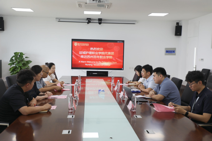 双方围绕学生管理工作、心理健康教育、就业工作、宿舍管理、学工系统等方面进行了深入交流研讨。会前,运城护理职业学院代表团参观了我校工业互联网实训基地和艺术长廊。