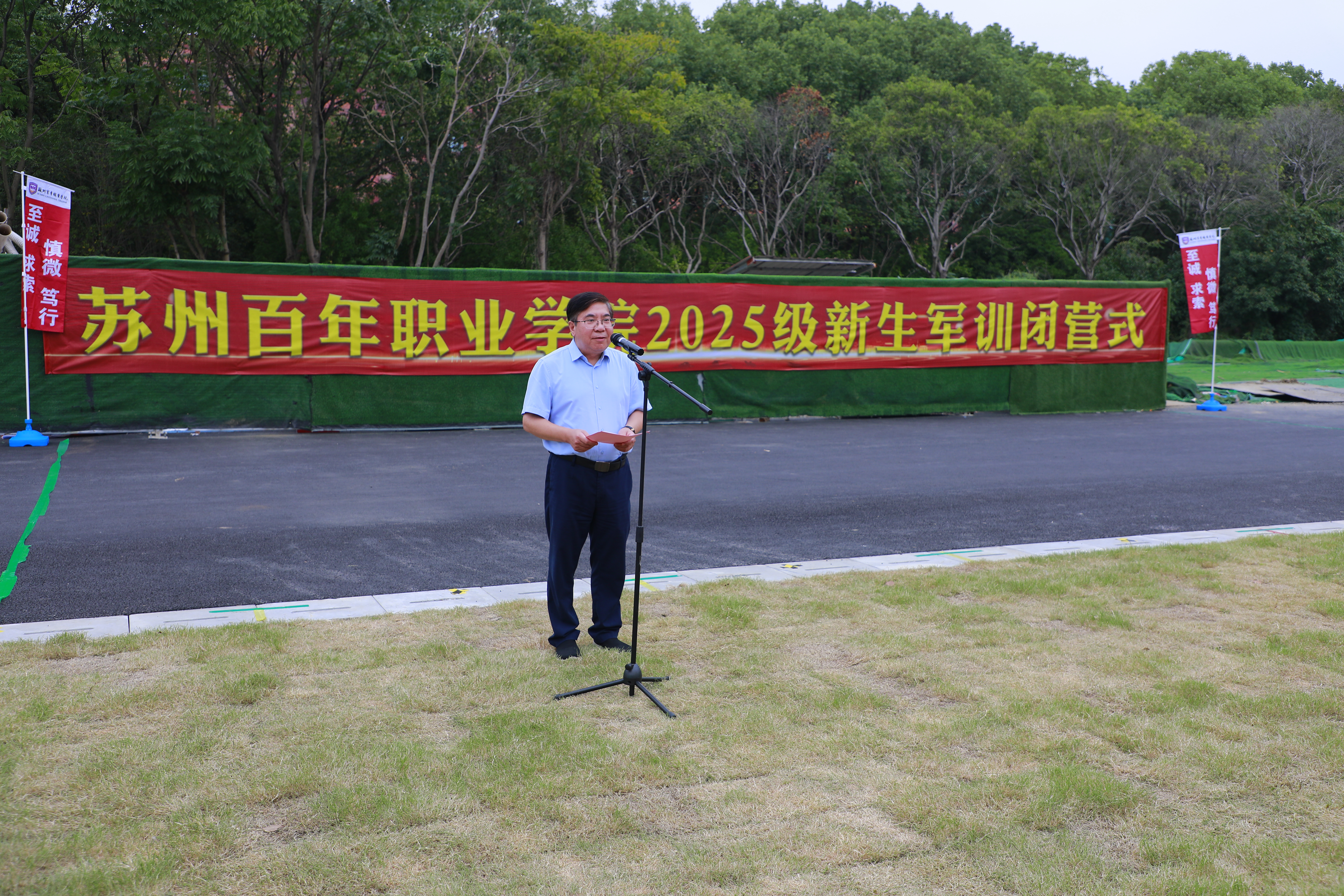 孙红军在讲话中,代表学校党委、行政,向辛勤付出、严格施训的全体教官,向悉心陪伴、无私奉献的各位老师,致以崇高的敬意和衷心的感谢;也向积极参与、勇于挑战、在军训中展现出坚韧意志的全体新生表示祝贺;他指出,今年是中华人民共和国成立76周年,回顾共和国从站起来到强起来的征程,先辈们历经磨难迎来辉煌;在9月3日的纪念大会上,习总书记强调的抗战精神是同学们大学生学习生活的宝贵财富和强大动力;他勉励同学们,要以为国家独立与民族复兴奉献牺牲的先辈们为榜样,将军训中学会的坚韧、团结、自律融入日常,在未来的求学之路上勇攀高峰,书写属于自己的精彩人生;同时,他向同学们提出四点期望:一是立大志,以梦想为灯塔,照亮前行之路;二是明大德,以品德为基石,构建人生大厦;三是健体魄,以身体为基础,享受健康人生;四是启心智,以知识为钥匙,开启智慧之门。