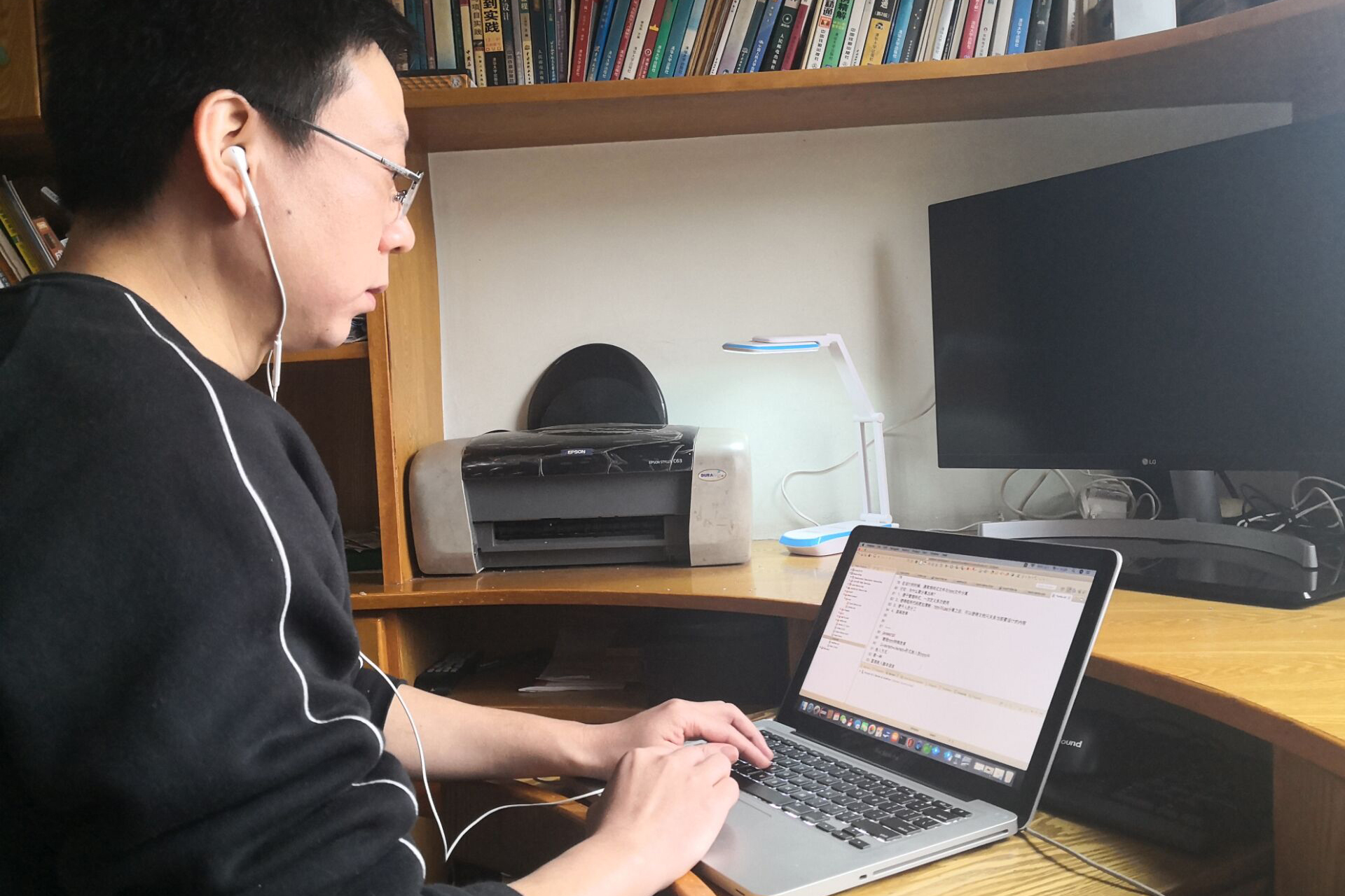 在音乐课上,陈国志老师在授课中,一边利用屏幕共享课件内容,用鼠标充当彩色记号笔圈画重点;一边小窗口与同学们互动交流,并请同学为大家做示范。他说,这门课程的操作性、实践性很强,如何在线远程上好课,是我近段时间苦苦思考的问题。在学校组织安排下,我学习了多个平台的授课方式,通过与学生的多次尝试、磨合,最终选择了“腾讯课堂”作为教学平台,我精心备课、制作课件、录制视频。在线教学让我更新了教学理念,学习到先进的、前沿的教学手段与方法,对今后开展线上线下混合式教学更加充满信心。