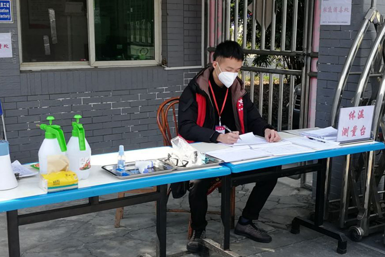 疫情发生以来,文学与传播学院杨金华同学在家人的支持下,冲锋在前,自2月9日开始便主动加入到当地疫情防控志愿者服务队,认真履行一名党员的责任义务。她说,“当在家乡社区微信群看到招募志愿者的消息时,作为一名中共党员就应当奋战在一线,为人民服务,在疫情面前,就应冲锋在最前面。”她每天早上8:00便早早来到服务点,戴好口罩、手套,对过往车辆、人员进行出入信息登记,并开展体温检测、卫生消杀和防疫知识宣传等,每天工作近10个小时,至疫情得到有效控制期间,杨金华在家乡连续服务了42天,累计服务时长343个小时,是文理青年中服务时间最长的志愿者。