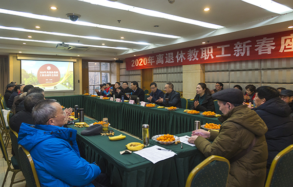 团拜会上,王成端代表学校党委感谢离退休老同志多年来对学校各项事业发展的辛勤付出和默默奉献。他说,过去的一年,在全面加强和改进学校党的建设、努力推动各项事业发展的过程中,学校高度重视离退休工作,配齐配强离退休工作干部队伍,重视对离退休教职工的服务保障和走访慰问,举办离退休教职工文体活动,丰富离退休职工的文化生活。在新的一年,学校党委将继续以习近平新时代中国特色社会主义思想为指导,全面贯彻党的教育方针,深入学习贯彻党的十九届四中全会和省委十一届六次全会精神,全面贯彻落实全国、全省教育大会和新时代全国本科教育工作会议精神,围绕立德树人根本任务,紧扣学校“三步走”发展战略和“1234”总体部署,聚焦推进高水平应用型大学建设的新目标新使命,坚持以全面加强学校党的建设为引领,以内涵发展、转型发展、创新发展、特色发展为路径,持续深化教育综合改革,加快推进学校治理体系和治理能力现代化,推动学校事业高质量发展,努力办好人民满意的高等教育。他希望各位老领导、老同志们结合自身志趣、爱好和专长,继续为学校发展建言献策、发挥余热。