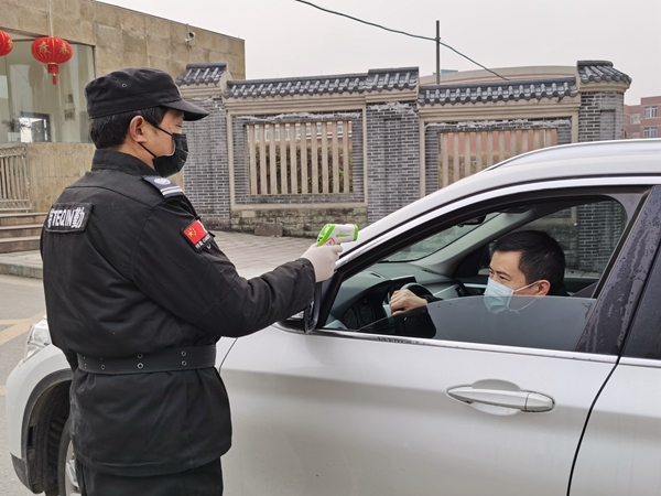保卫人员对进出师生员工测量体温
