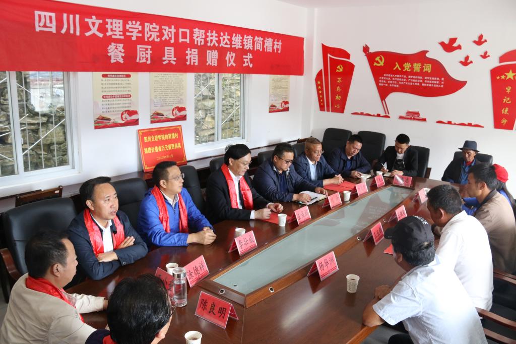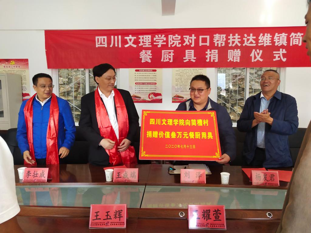 今年是脱贫攻坚决战决胜年,是全面建成小康社会的关键年,学校对小金县达维镇简槽村始终保持高度关注,及时制定帮扶计划,对其产业发展、人居环境提升、思想素质提高、文化氛围打造等方面给予大力支持。王成端一行来到海拔3200米的简槽村村委活动室向该村捐赠了价值三万元的炊餐用具,帮助村民提升自办宴席能力,减少村民生活支出。