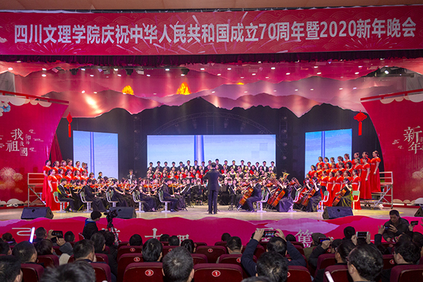 薪火相传七十载,筑梦未来新时代。12月29日晚,学校在莲湖校区音乐厅隆重举行庆祝中华人民共和国成立70周年暨2020新年晚会。晚会以歌颂祖国辉煌历程和伟大发展成就为主线,节目类型多样,艺术形式丰富,生动表达了文理师生热爱伟大祖国的款款深情和筑梦新时代的奋斗热情。