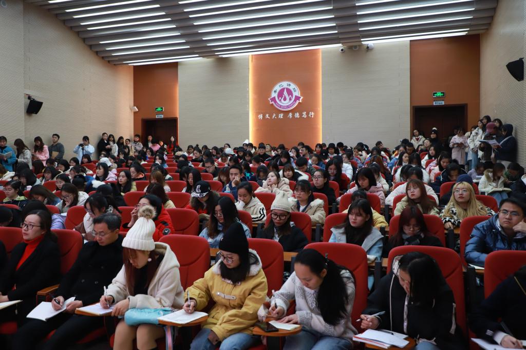 11月23日,党委书记王成端教授在学术报告厅为马克思主义学院、政法学院、文学与传播学院、教师教育学院等学院师生作题为“习近平总书记教育重要论述导学”形势与政策报告。报告会由马克思主义学院、政法学院院长刘长江主持,教务处处长程碧英、文学与传播学院党总支书记李红梅、院长曾宪文以及部分师生参加报告会。