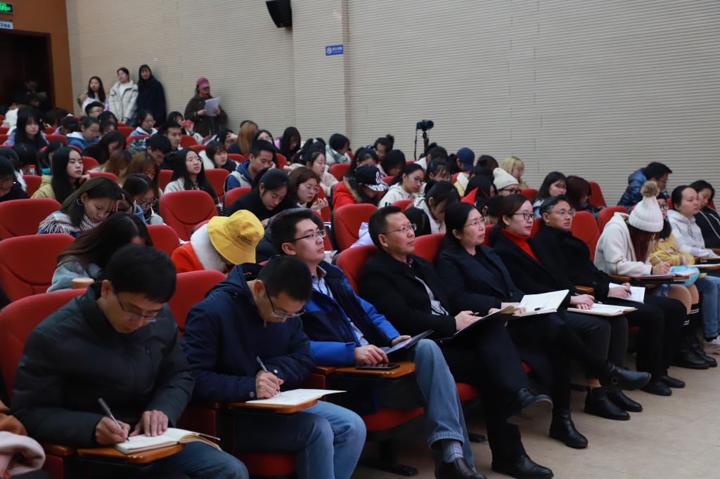刘长江在报告总结中说,王成端教授的报告既有理论高度、思想深度,又有情感温度,是一堂生动精彩的思政“金课”,给我们思政课教师做出了很好的示范引领,思政课教师一定要认真学习领悟;同时,报告结合pp电子教育教学改革实际,从同学们最关切的一科多考等方面讲授,很接地气,赢得同学们的点赞,希望同学们一定要认真消化吸收报告精神,坚定理想信念,不忘教育初心、牢记教师使命,为今后潜心教书,用心育人打下坚实的基础。