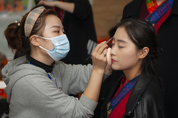 为较好地服务参演团队,校团委专门编写了志愿服务工作手册,并对所有志愿者进行针对性培训,为每个节目组配备了3名志愿者,与他们“结对子”,对参演师生进行体温检测,引导排练走台,搬放演出道具和服装等,在展演期间成为了一道靓丽的风景线。康养产业学院薛钎是本届大艺展主动报名的志愿者,他说,“大艺展志愿服务工作强度很大,要求很高,需要高度的责任心和耐心。这次志愿服务不仅提升了组织、协调、沟通能力,还大大提高了我们的团队意识。”