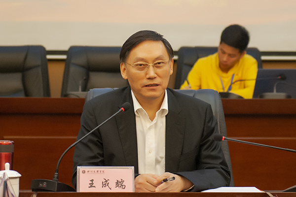 王成端结合新时代高等教育的历史使命向青年学生讲解“三心四能五复合”人才培养目标提出的重要意义及内涵。他希望青年大学生在今后的学习生活中要勤学,要掌握科学有效的学习方法,要将书本知识学活、学深、学透;要善思,要将前后学习的知识进行有效贯通,把握知识之间的联系;要多问,要不耻下问,善于提出问题才能不断增加知识的厚度;要笃行,勇于实践,用自己的行动和品格不断汇聚起推动社会进步的强大精神力量,做新时代的追梦人。