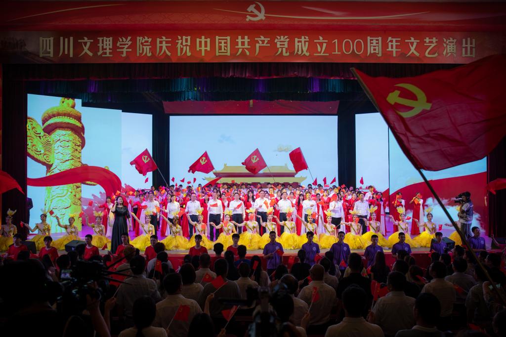 党委书记王成端,党委副书记、校长刁永锋,市委常委、政法委书记、副市长丁应虎,党委副书记侯忠明,副校长李壮成、徐晓宗、朱兴华、邓杰、程碧英及市人大、市委组织部、市纪委监委、市教育局、市科技局、市自然资源和规划局、达州职业技术学院、达州市文化旅游投资公司等单位领导出席,与师生400多人共同观看演出,回顾中国共产党成立100年来波澜壮阔的光辉历程,共同祝福伟大的党带领中国人民迈进新征程、奋进新时代。