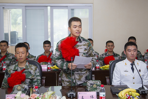 入伍大学生代表王伟发言