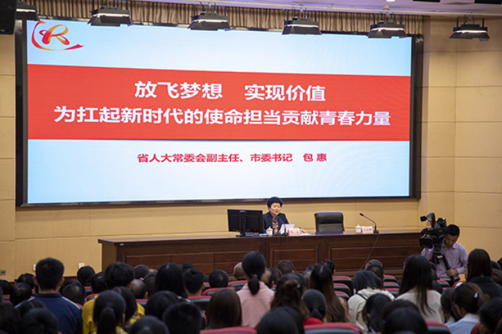 包惠书记通过解读央视热播电视剧《大江大河》3位主人公的奋斗历程,引入“使命”和“担当”。她说,一个时代有一个时代的主题,一代人有一代人的使命。中国特色社会主义进入新时代,对每一个个体而言,使命和担当就是要抓住时代机遇,把握时代脉搏,紧跟时代步伐,在时代大潮中书写青春华章。对于达州而言,就是要以习近平新时代中国特色社会主义思想为指导,加快实现“两个定位”、奋力争创全省经济副中心。