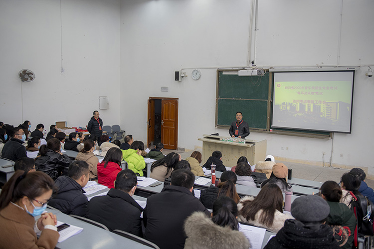 12月19日,四川省2022年普通高等学校音乐类招生专业考试《视唱练耳及乐理》科目“练耳及乐理”笔试考试达州考点考务工作在pp电子顺利进行。来自达州、巴中的2000余名考生在pp电子参加这项专业考试。学校高度重视,精心准备,整场考试秩序井然,广大考务工作者和监考教师严守纪律、尽职尽责,圆满完成各项任务。