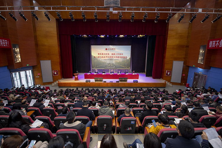 教务处处长陈熙隆以“勠力实现教务‘四化’,全面抓好教育教学‘新基建’”为题作交流发言。他就抓落实提出,要全力做好本科人才培养方案修订工作,扎实开展好实践教学,做好新技术的应用和考核评价工作,要强化基层教学组织工作,加强教育教学改革和研究工作,多措并举提升人才培养质量。