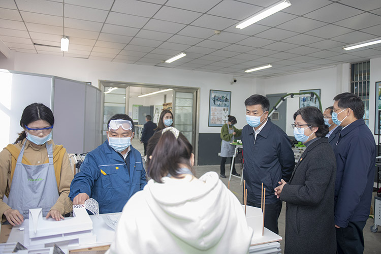 于立军详细了解学校的办学思路、办学历程和办学成果,参观了“巴山画家群”的艺术作品,询问了书法艺术专业教学情况,认真听取学校党委互联网思想政治工作部的育人情况介绍,对学校的改革发展举措和办学成绩表示肯定,对学校师生创作的艺术作品给予赞许。