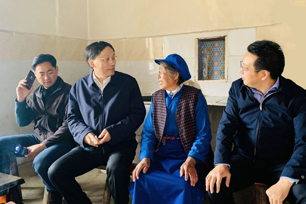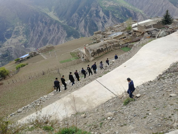 王成端一行中午到达达维镇,不顾长途奔波劳累,一下车就出席了学校给达维镇简槽村装载机的捐赠仪式,随后又前往实地查看了学校出资为简槽村三组危崖路段捐赠的防护栏工程。参观学校党委组织部、马克思主义学院党总支与简槽村党支部结对共建的“党员活动室”及美术学院师生绘制的文化墙,与简槽村党员、干部、贫困户代表进行了交流。前往慰问学校对口帮扶的简槽村和胆扎村的6户贫困家庭。晚上,王成端顾不上休息,与学校驻村干部进行座谈,了解他们的工作和生活情况,谆谆叮嘱学校的两位驻村帮扶干部一定要牢记职责、扎根基层、走进群众、实地调研、勤奋工作。