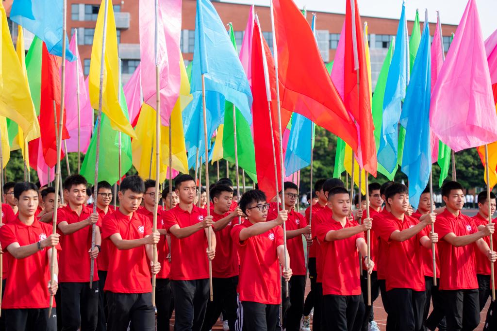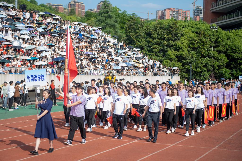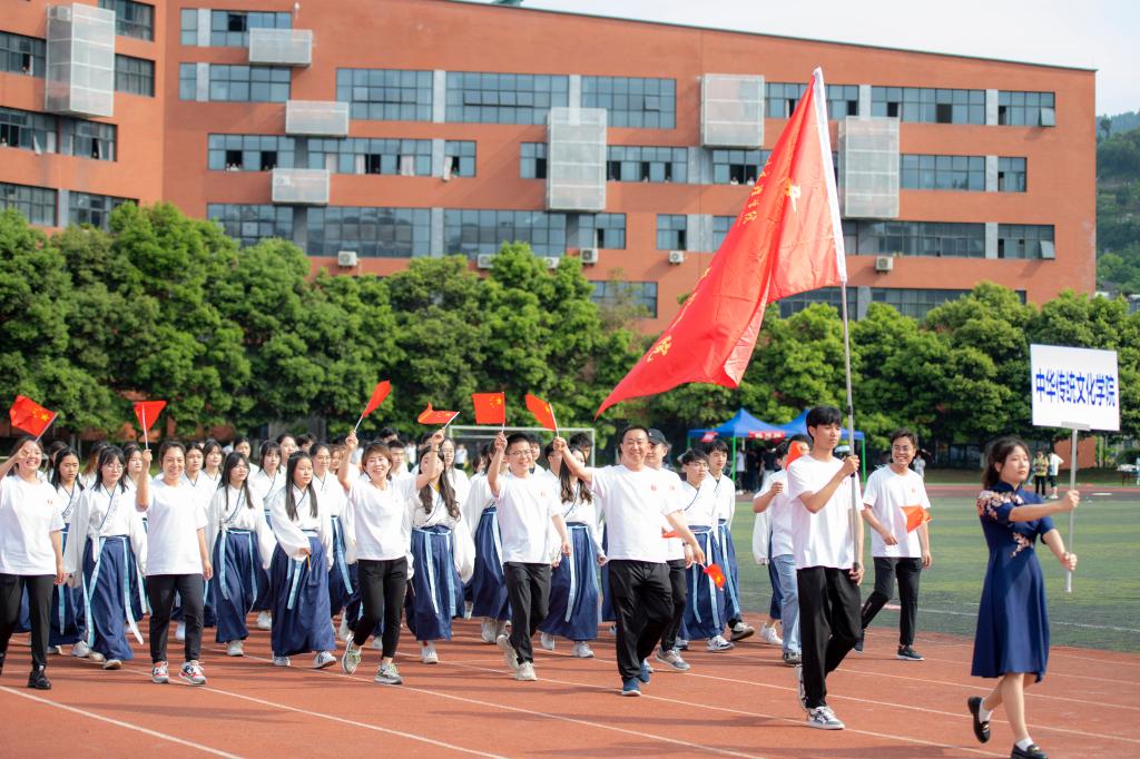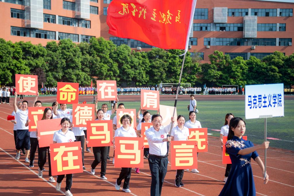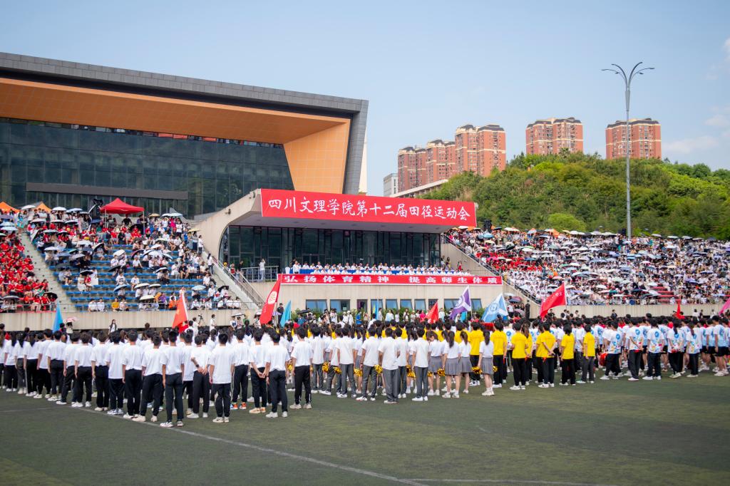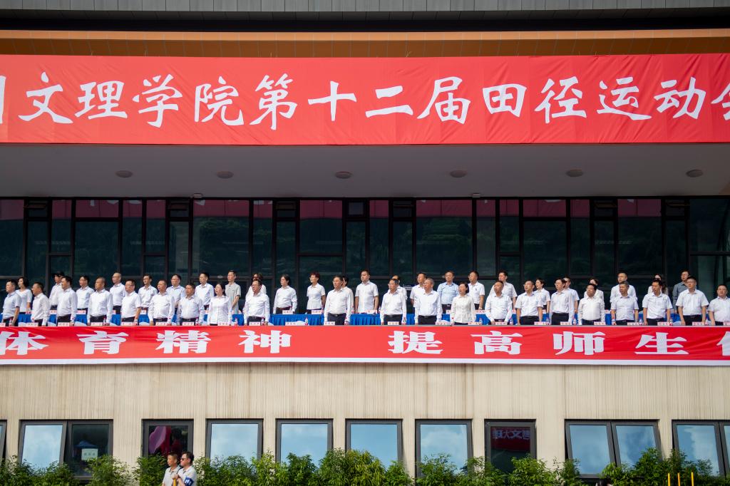开幕式举行了隆重的升国旗和升校旗仪式,全体师生齐唱国歌、校歌,嘹亮的歌声响彻校园,展现了文理师生激昂奋进、斗志昂扬的精神风貌。