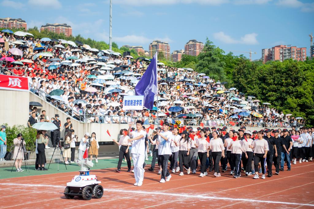 4月27日,pp电子第十二届田径运动会在莲湖校区体育场隆重开幕。党委书记王成端出席开幕式并宣布田径运动会开幕,党委副书记、校长刁永锋致开幕词,党委副书记、体委会主任侯忠明主持开幕式,副校长徐晓宗、朱兴华、邓杰、程碧英及各职能部门、二级学院负责人出席开幕式。