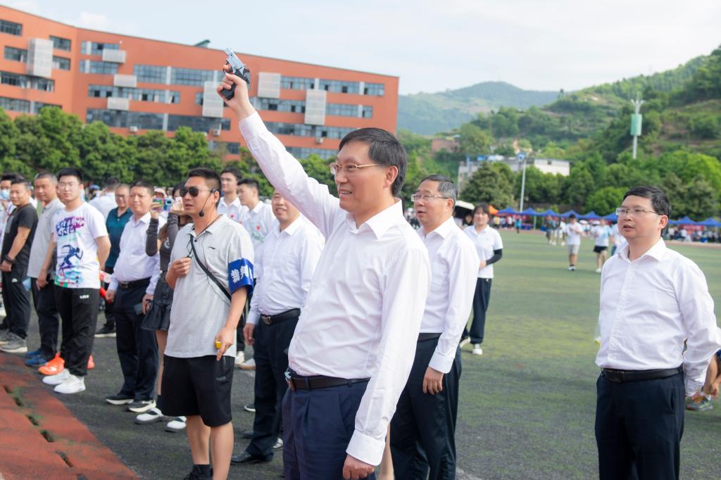 党委书记王成端鸣枪示意比赛开始
