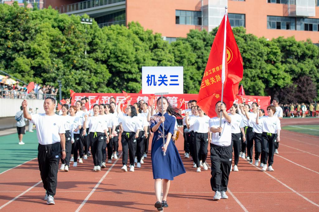 早上,暖阳洒满运动场,伴随着雄壮激昂的《运动员进行曲》,国旗仪仗队步调整齐、精神昂扬地走过主席台。随后,校旗队、彩旗队、裁判员代表队、各运动员代表队依次入场。他们迈着铿锵有力的步伐,喊着催人奋进的口号,以饱满的精神、挺拔的身姿接受检阅,展示了文理师生的绚丽风采。