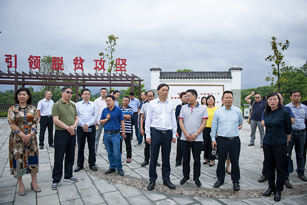 中心组一行人来到月华镇九银村实地调研易地扶贫搬迁工程。据了解,九银村是月华镇易地扶贫安置点,其创新性的“三三三”模式,全面完成了易地扶贫搬迁任务,特别是其坚持的“三融合”模式,不仅让农民搬得出,稳得住,还能致富。