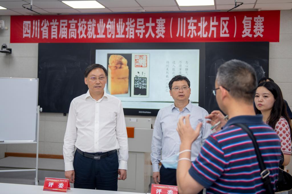 5月10 日、11日,党委书记王成端、校长刁永锋分别检查指导四川省首届高校就业创业指导大赛(川东北片区)复赛筹备工作。党委副书记侯忠明,四川省高校学生信息咨询与就业指导中心电子注册信息科科长樊建华,学校党委互联网思政部、武装保卫处、招生就业处、后勤服务处、基建处等部门负责人陪同检查指导。