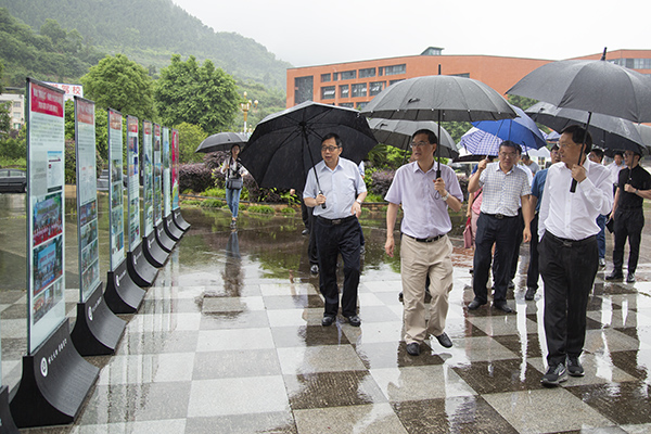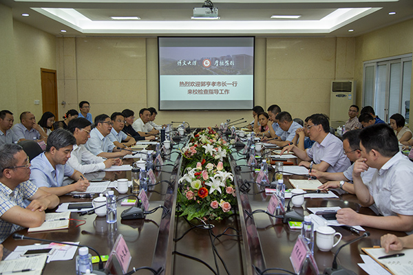6月11日,达州市人民政府市长郭亨孝冒雨率市委常委、达川区委书记许国斌、副市长何政、秘书长向仕春及市级相关部门负责人来校调研,深入南坝校区智能制造产业技术研究院考察机器人研究成果,指导科技创新工作,并在莲湖校区召开座谈会,听取学校工作的汇报,分析研究达州高等教育发展形势,提出从人才共享、科研经费、科技创新园区建设、合作共建等方面做实做强pp电子官方网站,支持pp电子官方网站创新发展。