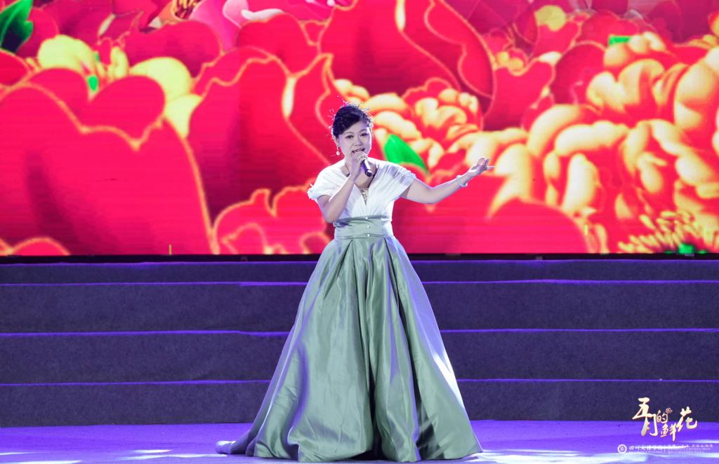 第二篇章“岁月赞歌”由《最美》《花开新时代》《青春不一样》等3首歌曲和舞蹈表演《青春为祖国加油》组成,歌颂文理学子以青春奔赴理想,以热血迎向未知的奋斗精神。其中《花开新时代》由音乐与演艺学院李玥欣老师演唱。她说:“一首好的歌曲需要每个环节都不可敷衍,都需要恰到好处。和一般的晚会歌曲不同,《花开新时代》歌词和音乐都很有新意。这首歌歌词既有时代性,又有艺术性;旋律优美,在配器上更注重意境的表现,在享受听觉盛宴的同时,更有‘花开’现场的感觉。我将自己对学校的感情都融进了歌里,化作音符,带着文理人对这个时代的美好与对未来的无限憧憬:愿美丽的文理学院每天都沐浴新时代的春风,每天都是花开的季节。”